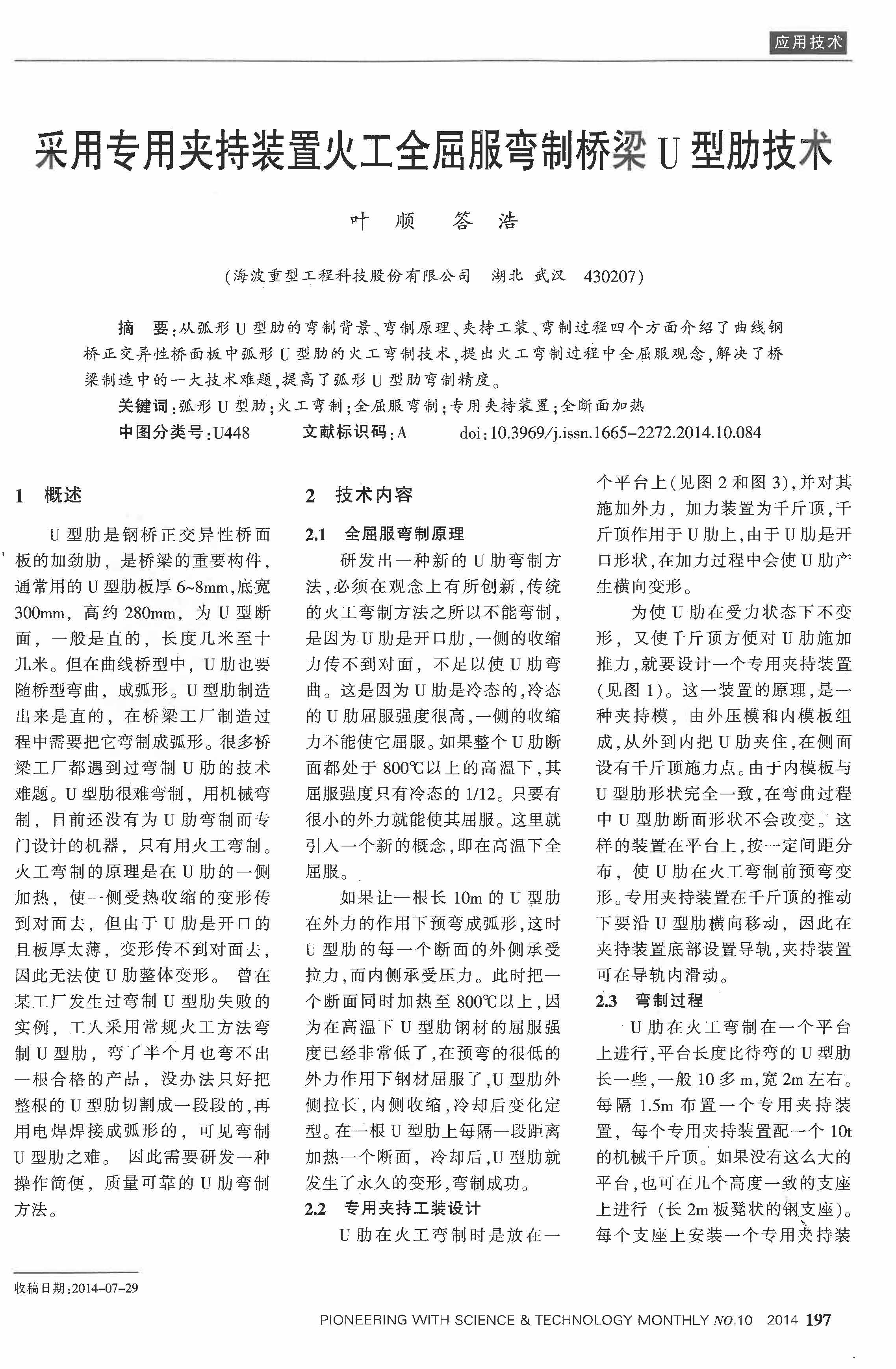 采用專用加持裝置火工全屈服彎制橋梁U型肋技術(shù)