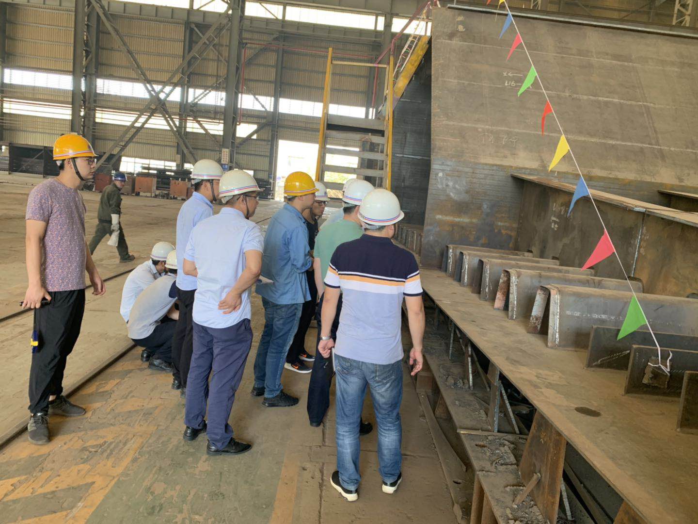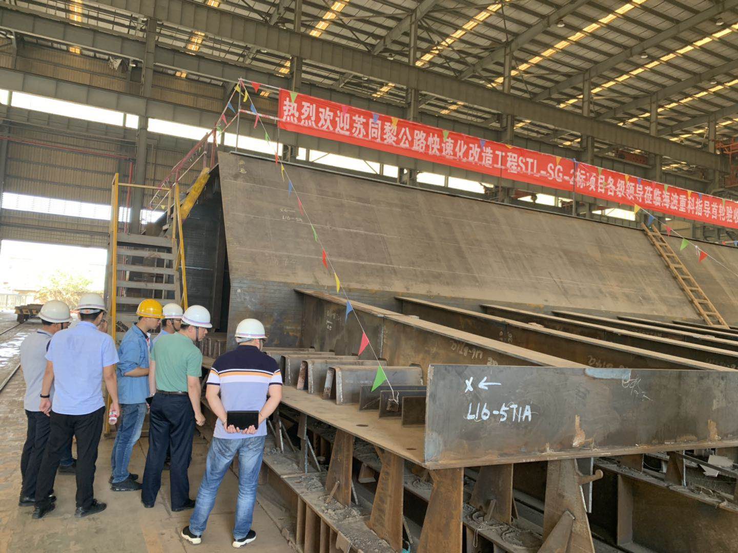 2019年7月10日,江蘇緯信工程咨詢有限公司組織在海波重科召開蘇同黎公路快速化改造工程STL-SG-02標(biāo)(L16聯(lián)5-9節(jié)段)首輪制造總結(jié)會(huì),與會(huì)人員查看了現(xiàn)場首輪鋼箱梁構(gòu)件,聽取了制造單位的匯報(bào),審閱了相關(guān)資料,討論形成最終意見:《蘇同黎公路快速化改造工程STL-SG-02標(biāo)工程鋼箱梁首輪制作施工》內(nèi)容齊全,資料詳實(shí);首輪鋼箱梁(L16聯(lián)5-9節(jié)段)整體尺寸、線形符合設(shè)計(jì)及規(guī)范要求;構(gòu)件檢驗(yàn)資料齊全有效,結(jié)構(gòu)、外觀良好,焊縫無損檢測合格。如圖: