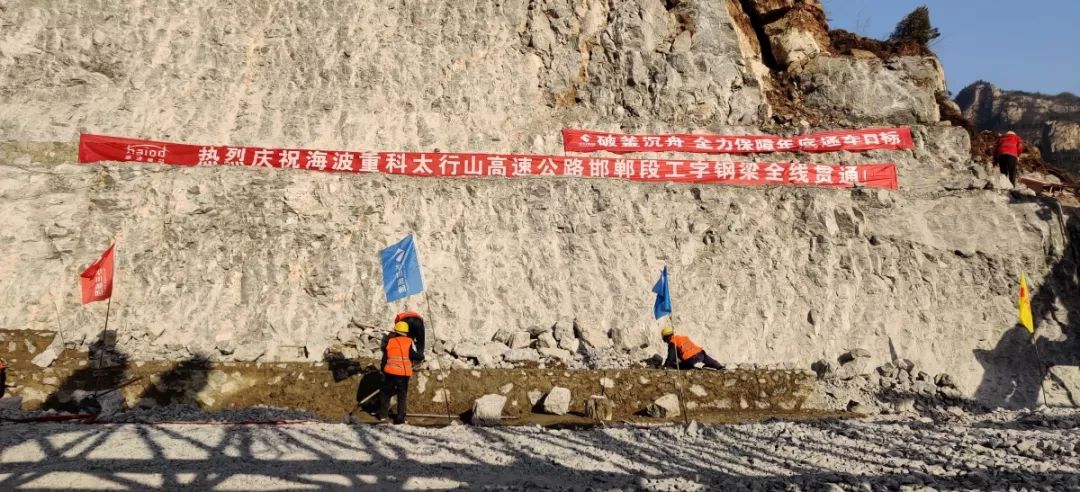 (海波重科新聞報(bào)道)2019年11月19日,由海波重科承接的太行山高速公路邯鄲段工字鋼梁全線(xiàn)貫通。甲方華川集團(tuán)黨委書(shū)記、董事長(zhǎng)、總裁謝應(yīng)文、總工程師曾昭明、華北片區(qū)指揮長(zhǎng)陳杰、項(xiàng)目經(jīng)理牟世輝、海波重科總經(jīng)理劉乾俊、項(xiàng)目執(zhí)行經(jīng)理趙占云、項(xiàng)目總工甘泉等領(lǐng)導(dǎo)共同見(jiàn)證這一振奮人心的時(shí)刻。