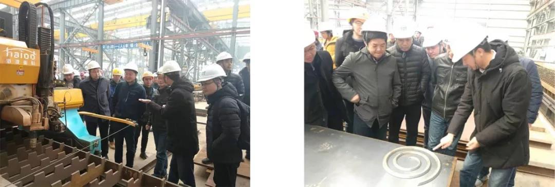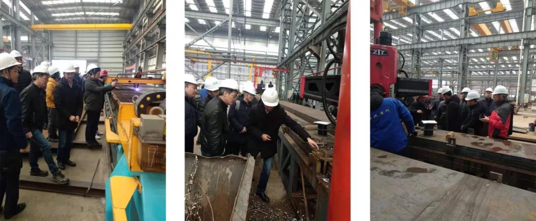 湖北省交通廳建設(shè)處副處長周炎新、湖北省交通廳公路局處長呂厚全、副處長謝華鸞、湖北省院副總監(jiān)張貴士、長江路橋總經(jīng)理王懷才、書記馮太坤、總工楊建波、江北東項目業(yè)主董事長左光恒、副經(jīng)理黃遵義、中交二公院二分院書記孫貴清、工研院副院長夏飛、橋梁院副院長、總工朱玉、四航局一公司副總工程師劉永峰、黃國忠、工研究結(jié)構(gòu)所總工李平杰、北京工業(yè)大學、同濟大學各位老師及領(lǐng)導蒞臨海波重科漢南分公司鋼結(jié)構(gòu)加工廠做現(xiàn)場考察工作。