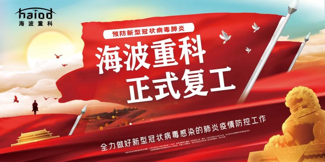 (海波重科新聞報(bào)道)2019年3月26日,根據(jù)江夏區(qū)新冠肺炎疫情防控指揮部發(fā)布的《關(guān)于江夏區(qū) 23 家企業(yè)復(fù)工復(fù)產(chǎn)的批復(fù)》以及區(qū)科經(jīng)局《關(guān)于同意海波重科回復(fù)正常生產(chǎn)的文告》以及武漢經(jīng)濟(jì)技術(shù)開(kāi)發(fā)區(qū)(漢南區(qū))新冠肺炎疫情防控指揮部對(duì)海波重科漢南分公司企業(yè)復(fù)工復(fù)產(chǎn)的批復(fù),經(jīng)公司討論決定,海波重科將采用分批的方式復(fù)工復(fù)產(chǎn)。