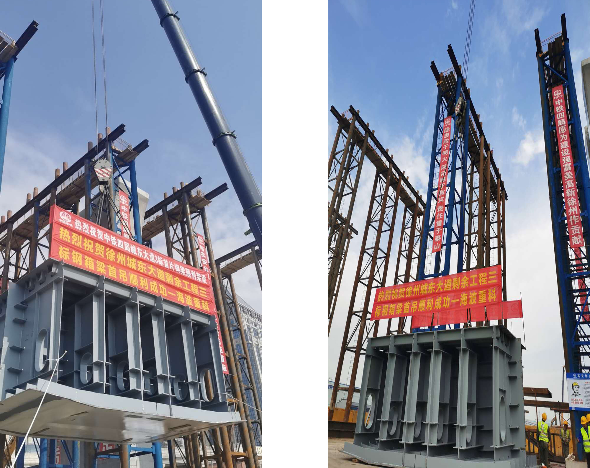 (海波重科新聞報道)2020年10月26日上午,徐州城東大道項目現(xiàn)場,伴隨著現(xiàn)場數(shù)百人的目光,首片鋼箱梁準(zhǔn)確無誤的落在預(yù)定架設(shè)點(diǎn),這一刻標(biāo)志著徐州城東大道剩余工程3標(biāo)向著全面完工順利通車又前進(jìn)了一大步!