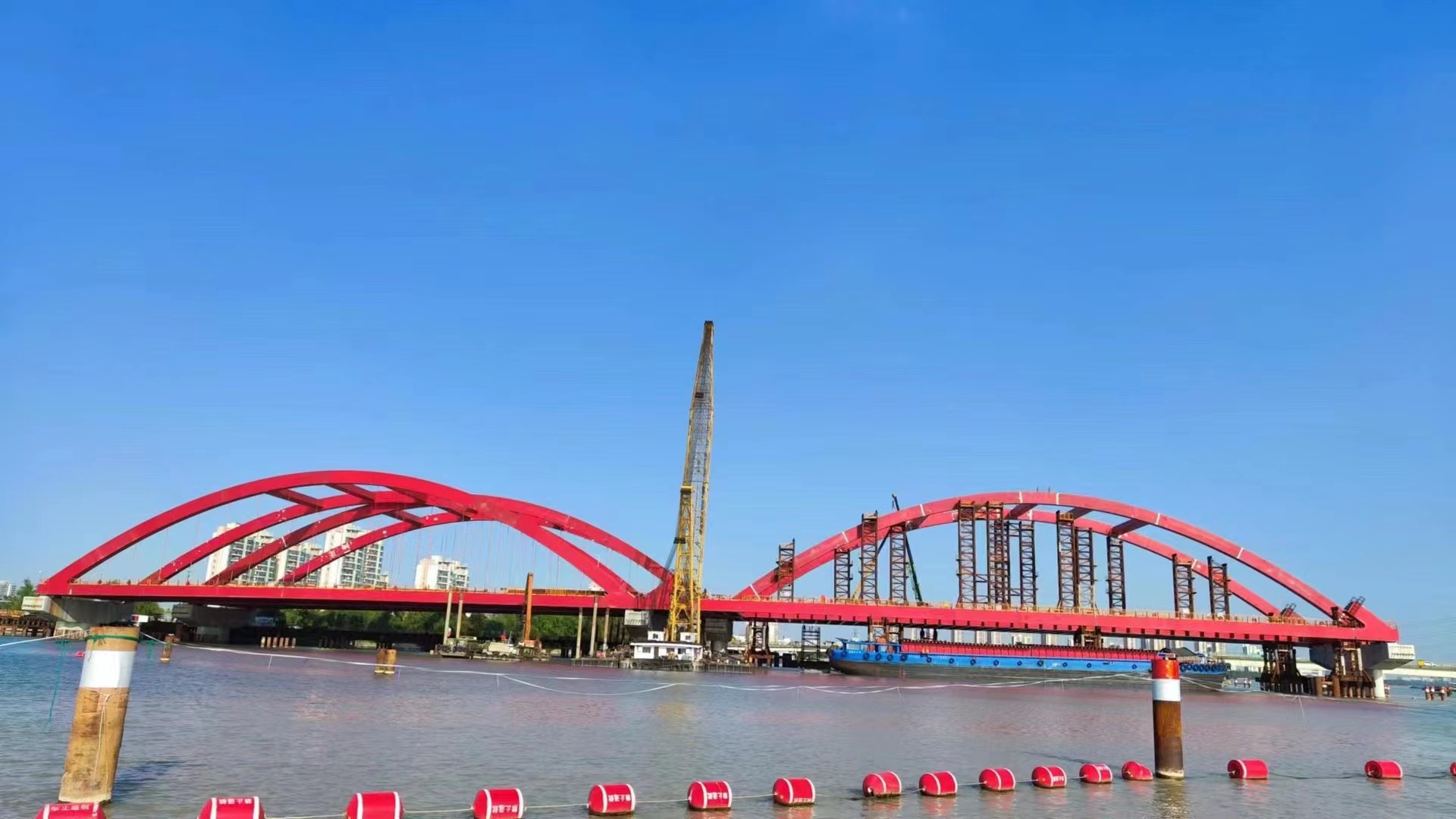 2022年11月16日,海波重科參建項目,大橋主體部分全部順利吊裝完成,預(yù)示著離該項目完工已接近尾聲。