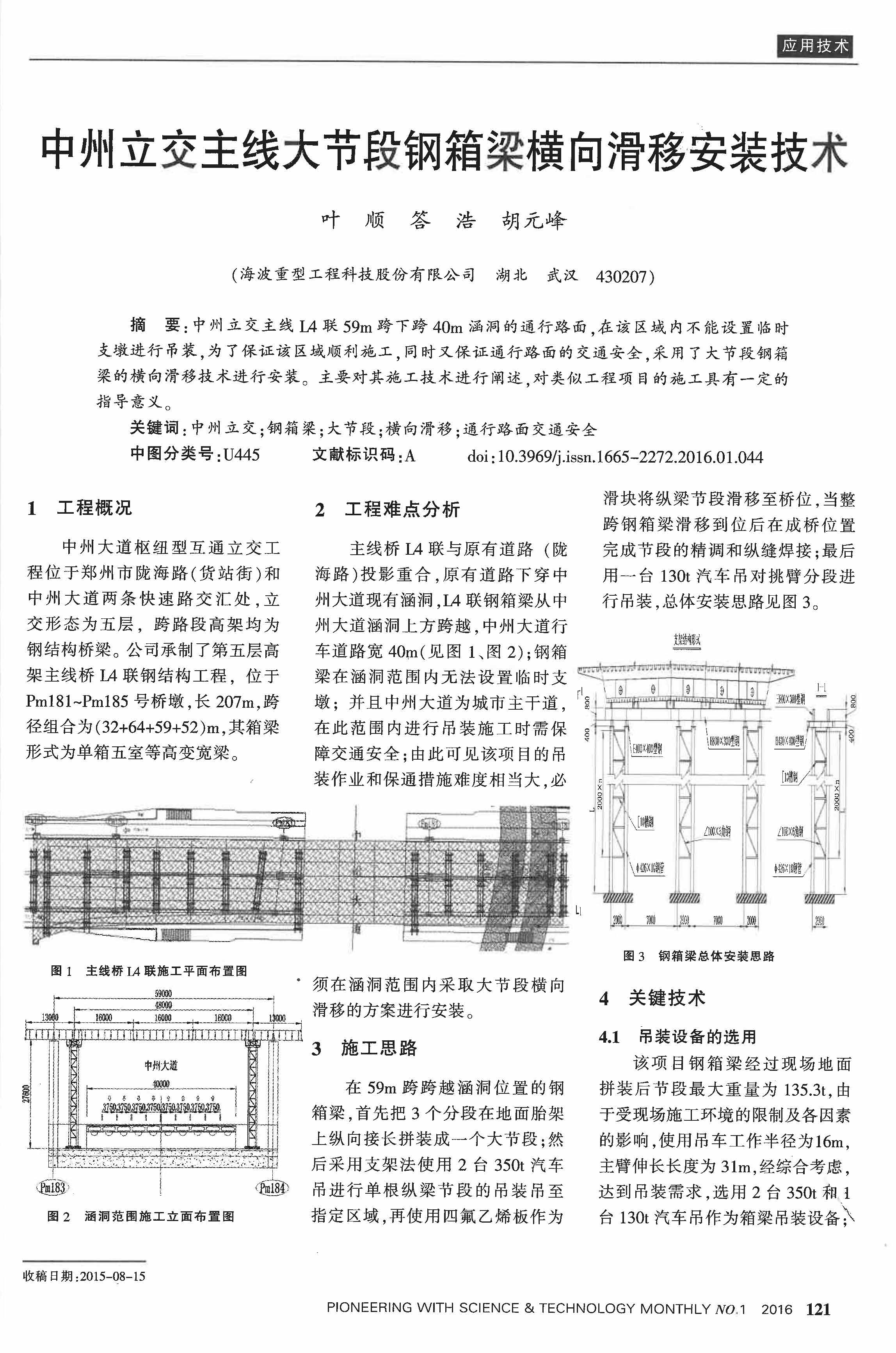 中州立交主線大節(jié)段鋼箱梁橫向華裔安裝技術